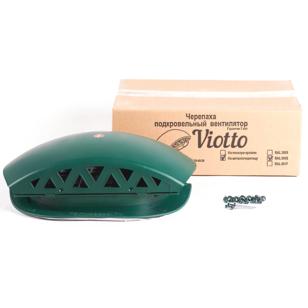 Подкровельный вентилятор "Черепаха" Viotto RAL 6005 Зеленый Мох для кровли из металлочерепицы в Кызылорде