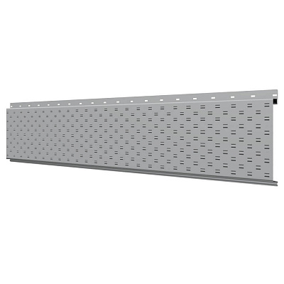 Линеарная потолочно-стеновая панель с ПЕРФОРАЦИЕЙ для вентиляции цвет RAL7004 Серый применяется в качестве софитов для подшивы крыши, наружной и внутренней отделки потолков, стен, фронтонов фасада дома в Кызылорде.
