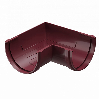 Угловой элемент желоба универсальный ДЕКЕ STANDARD d120мм 90 градусов цвет RAL 3005 Красный в Кызылорде. Угловые элементы устанавливаются как на внешних, так и на внутренних углах кровли и предназначены для соединения желобов.