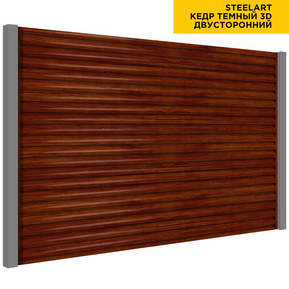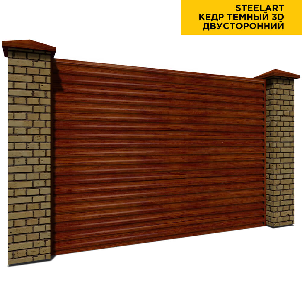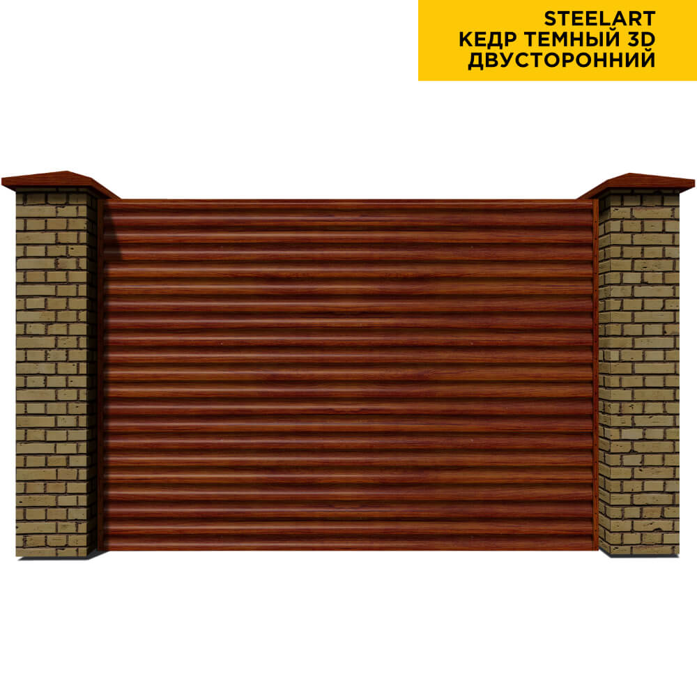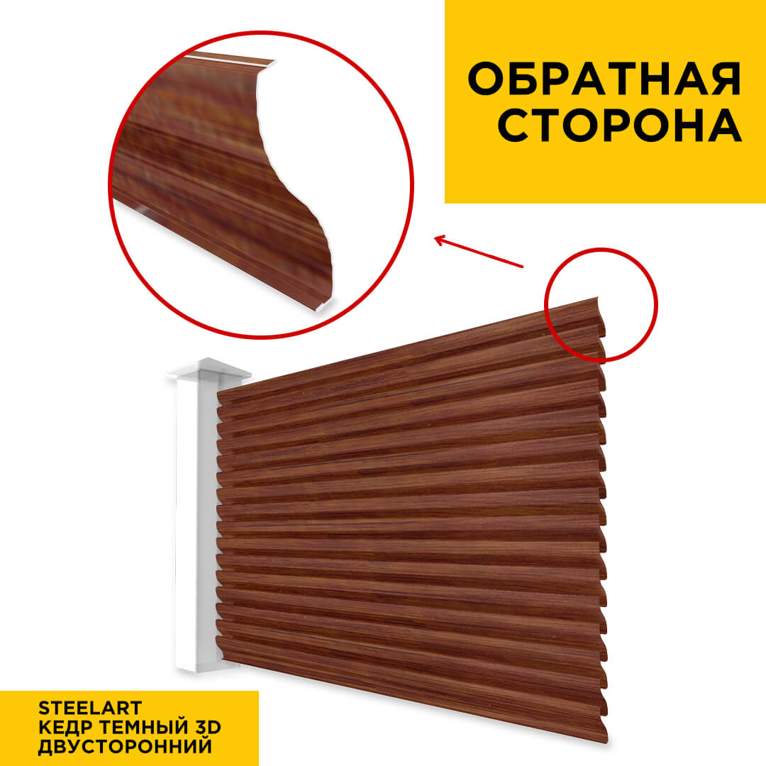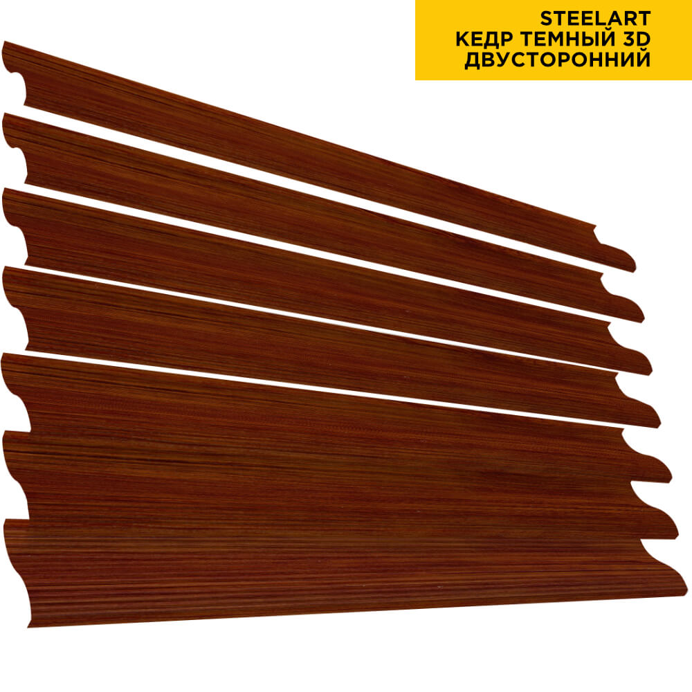 Ламель Еврожалюзи металлическая S-образная, цвет под дерево Кедр Темный 3D SteelArt Россия двухстороннее покрытие, длина любая кратно 1см под заказ - для забора-жалюзи, беседки, перголы в Кызылорде