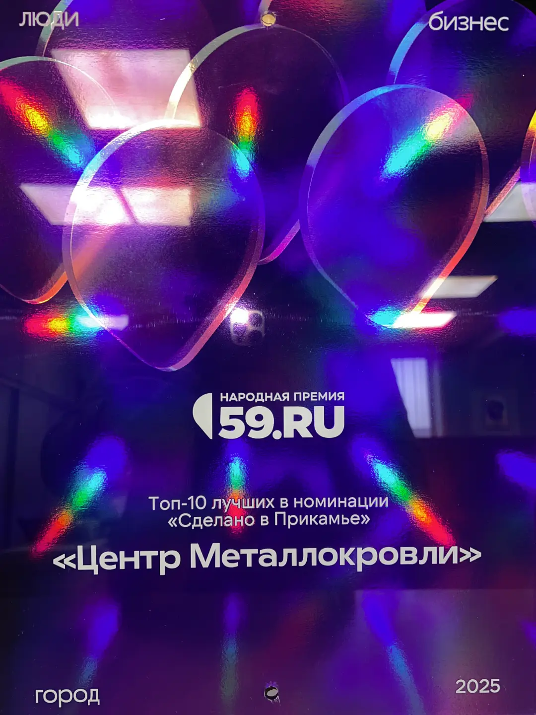 Диплом «Центр Металлокровли» Топ-10 в номинации Сделано в Прикамье 2025