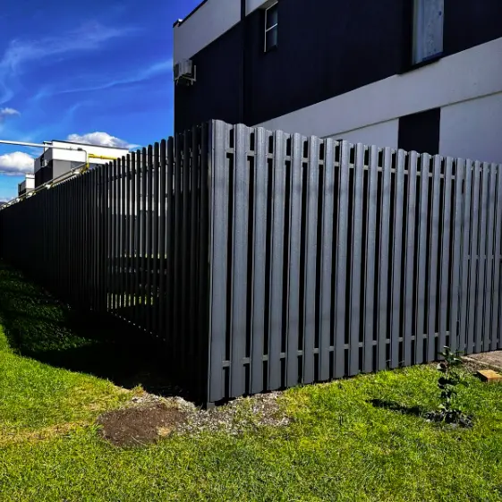 Забор в шахматном заполнении из металлического штакетника «Фигурный» цвет RAL7024 MATTE Серый Графит матовый полиэстер в двустороннем покрытии. Ограждение выглядит аккуратно и стильно как со стороны улицы, так и со стороны двора. Конструкция «шахматка» обеспечивает сочетание надёжности, хорошей вентиляции участка и визуальной изоляции, а благодаря фигурной форме штакетин забор приобретает выразительный внешний вид и долговечность. Такой вариант отлично подходит для тех, кто ценит эстетику и практичность одновременно.