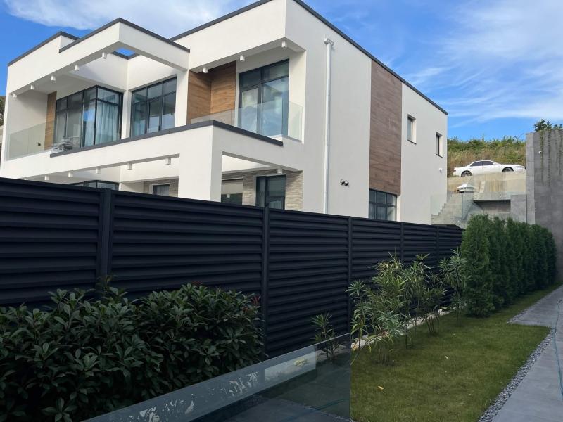 Секция Реснички RAL7024 МАТТЕ Серый Графит матовый двустороннего забора вид спереди Секция Реснички RAL7024 МАТТЕ Серый Графит матовый двустороннего забора вид сзади Ламель Реснички RAL7024 МАТТЕ Серый Графит матовый двустороннего забора